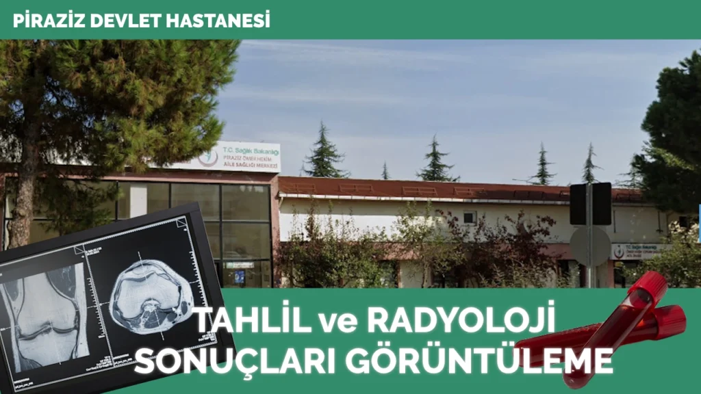 Giresun Piraziz Devlet Hastanesi ve Aile Sağlığı Merkezinde (ASM) yapılan kan, idrar tahlili, patoloji için laboratuvar sonuçları veya MR, BT, röntgen gibi radyoloji sonuçları ve raporlarını Piraziz Devlet Hastanesi rapor görüntüleme uygulaması veya E-Nabız üzerinden T.C. Kimlik Numarası ile hemen öğrenilebilmektedir.